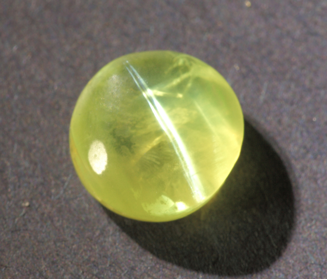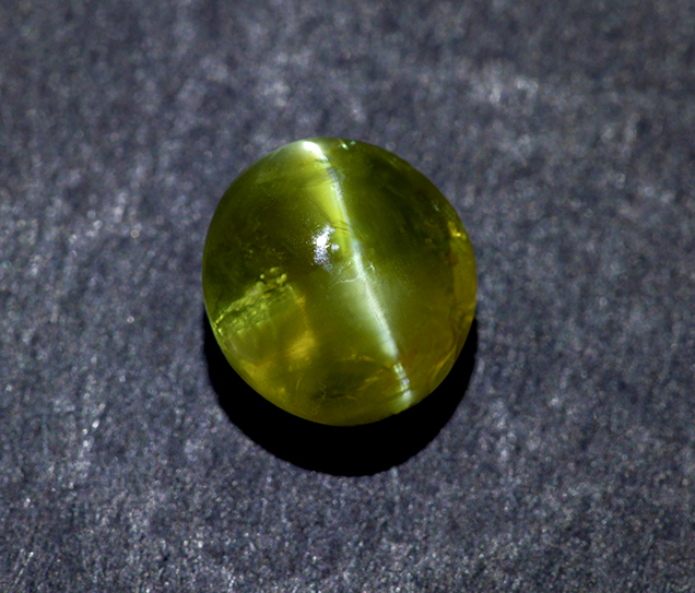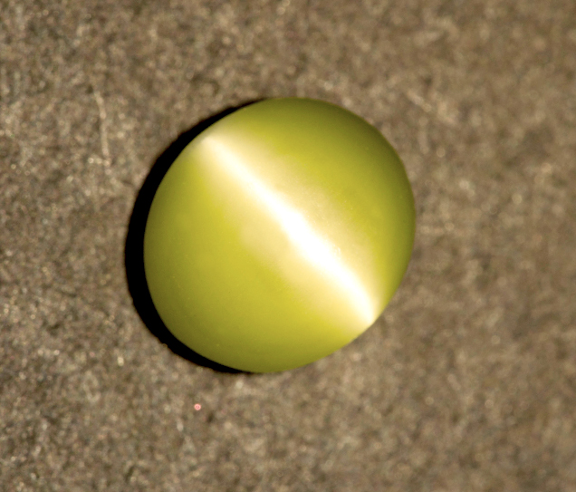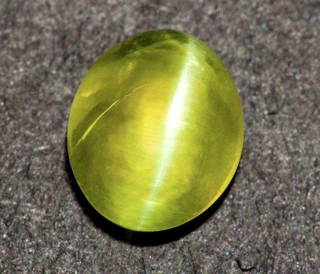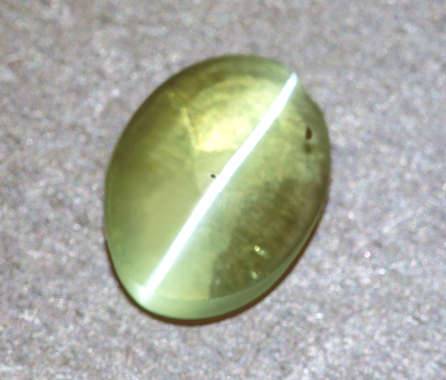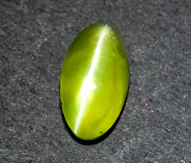 Cat's Eye gemstone comes from the gem mineral of Chryosberyl. It is an aluminate of beryllium - a mixture of aluminum and beryllium - having traces of oxide of iron and chromium, which serve as coloring agents and give it brownish and greenish tinges.